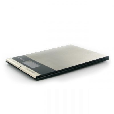 Balance précision INOX Extra Plate Plateau en INOX Touches Sensitives Pesée maximale : 5 kg Aquatronic : pesée en ml Précision : 1g Livrée avec piles Tare