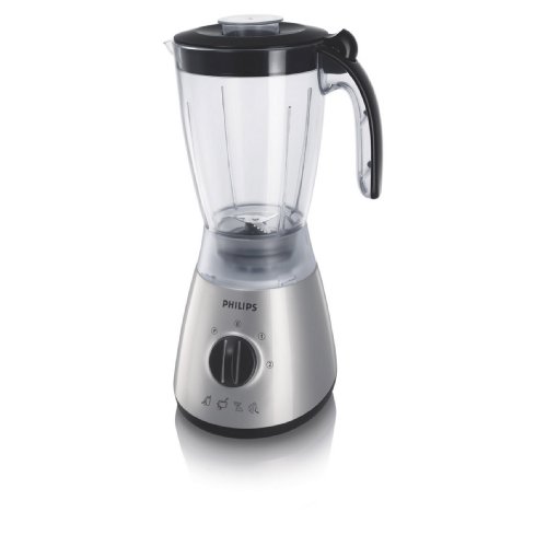 The Philips blender offers a 400 W motor, Blender 400 W, 1.5-l plastic jar, 2 speed and pulse, Black with silver accents