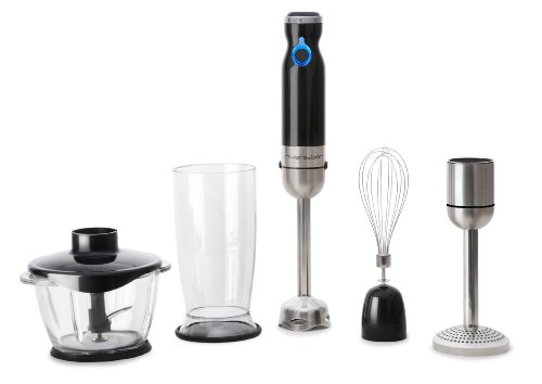 Set mixeur Xellence PR 154 A RIVIERA ET BAR. Pied mixeur exclusif avec couteau 4 Lames Etoilées. Puissance : 800 W. Variateur électronique 12 vitesses. Bloc moteur finition noir Piano avec variateur de vitesses et embase en inox.Pied presse-purée tout inox. Bol hachoir en verre épais spécial glace pilée. Fouet ballon multibrins en inox. Bol mélangeur et ensemble des pièces plastiques sans Bisphénol A. Grand voyant bleu de mise sous tension. Anneau de rangement. Capacité du bol mélangeur gradué : 800 mL. Capacité du hachoir en verre gradué : 500 mL. Dimensions du bloc moteur + pied mixeur : 400x80 mm. Mixage optimal et sans éclaboussures. Adaptation parfaite à toutes les préparations.